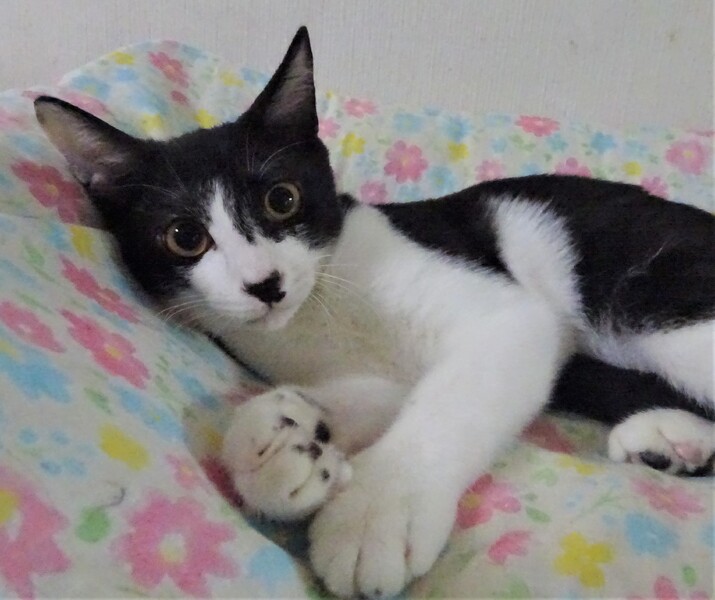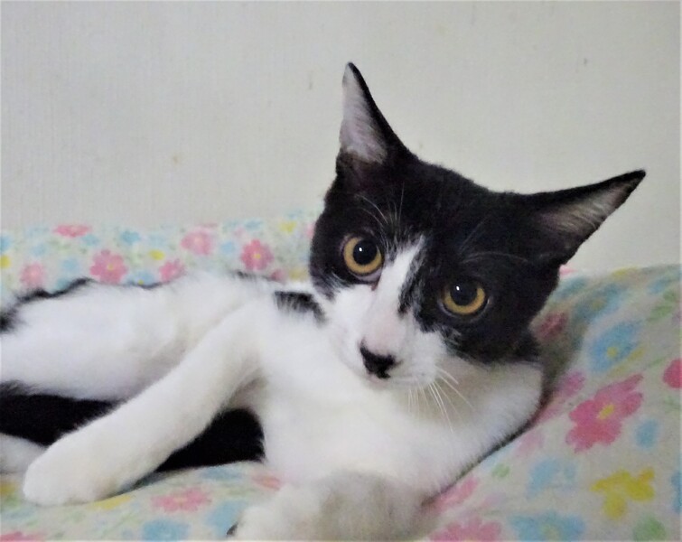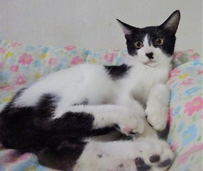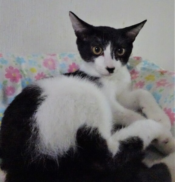 | 特徴(性格など) | 仮名: ペペくん(オス) 毛色: 黒白、尻尾長い 性格: 怖がりの所があり、カメラ嫌いです。譲渡会など人が集まる所ではベッドの下に潜って隠れようとしています。家ではあまり怖がる事もないのか、元気に活発に、大勢の他猫と一緒に遊んでいますので先住猫がいるお家でも大丈夫と思います。 抱っこすると甘えたりしますが、爪切りや薬は嫌いですから怒ったりします。 ネットにいれる時も怒りますから、基本はビビリです。 ホッペちゃんと兄妹なので一緒でも良いですし、1匹でも構いません。 ノミ取り済 検便済 駆虫済 3種混合ワクチン2回済 去勢手術済 猫エイズ・白血病ウィルス検査はともに陰性 |