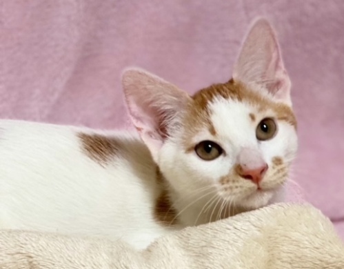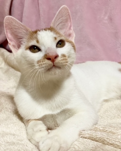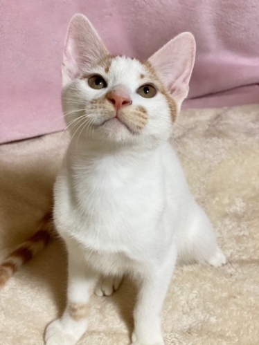 | 特徴(性格など) | 【仮名】りんごくん 【性格】パワフルで個性のある毛色のりんごくん☆ なが~いシマシマシッポがステキな男の子です。 とにかく遊ぶの大好き!猫じゃらしで遊んでいて とどかないと悔しくておしゃべりするなんて可愛い一面も(笑) 沢山のにゃんこ達と暮らしているので協調性も抜群です! 先住猫ちゃんがいるオウチでも大丈夫です☆ ※1匹譲渡可 |