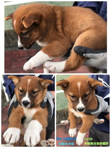 | 特徴(性格など) | まだ生後3ヶ月弱位、とっても可愛い雑種の仔犬、茶白色の男の子ฅ•ﻌ•ฅ 人懐こく尻尾フリフリ寄ってきますし抱っこも嫌がらずさせてくれて人の手からもフードを食べます(^^) 現在は1日に2回、ご寄付で送って頂いた栄養価の高い良質な仔犬用のフードを食べています。 まだまだ幼い為、長時間のお留守番は出来ません。寂しくて夜鳴きする子もいます。 健康な成長の為に良質なフードを与える事が可能な方、育てる自信と覚悟のある方、飼育経験のある方が望ましいですm(_ _)m 当分の間はかなり手がかかり大変かと思いますがまだ仔犬ですし、人間が愛情をもって接すれば、愛らしいこの子はきっと徐々に新しい初めての家庭環境にも馴染んでいけると思います。 広い心で手強い長期戦でもドンとこい^_^と仰って頂ける方、愛くるしいこの子を尻尾フリフリ♫ニコニコの笑顔にしてくださる方、寂しがっているこの子を目一杯甘えさせてくださる方、いらっしゃいませんか? どうぞ宜しくお願い申し上げますm(_ _)m ⭐️必ず室内飼育で、譲渡後速やかに病院受診、健康診断、混合ワクチン、生後4〜6ヶ月頃を目処に去勢手術をする事が可能なご家庭。 ⭐️まだまだ幼い為長時間のお留守番は出来ません。なるべくお留守番の少ない、沢山優しくスキンシップやコミュニケーションで触れ合っていただけるご家庭。 ⭐️トイレの躾は1からとなります。 まだ仔犬なので躾は入りやすいと思われます。 最初は何かと手がかかり大変ですが(ペットシート、トイレスペースを用意など)覚悟と根気・理解で受け入れて下さる方m(_ _)m ⭐️犬の飼育経験があり自信のある方、愛情を持って犬をしっかり躾することが出来る方、朝晩のお散歩や運動にも充分時間をあてられる方、場合によりトレーニング教室なども視野に入れて考えてくださる方。何卒宜しくお願い致します。 ⭐️親犬不明の為どの位の大きさになるか分かりません、大きくなっても、(今のところ吠えませんが)吠えても大丈夫なご家庭。 中型〜大きめの中型犬程度に成長すると思われますฅ•ﻌ•ฅ 以上の点を踏まえ、この子が置かれている状況、不安でいっぱいであろう心をご理解の上、全て受け入れ寄り添っていただけるご家庭で可愛がって頂きたいと祈っております。収容された全ての子達は身勝手な人間による被害者であり、何も悪くありません( ; ; ) 家族の一員として生涯大切にしてくださる優しいご家庭とのご縁が結ばれ幸せになれます様に♡ 家族の皆さんとずっと一緒に居られる温かいお家が見つかります様に☆⭐︎ 1日も早く温かな愛情を目一杯注がれながら、元気に幸せに生きてほしいです。 人間より遙かに短い生涯です。 冷たく硬いコンクリートの上、狭い檻の中でひたすら優しい素敵な里親様を待ち続けています。 悲しい事にこの世の中、人間に飼われないと犬は生きていく事が出来ません。 捨てる飼い主、探さない飼い主、医療にかけない飼い主、虐待する飼い主…飼い主を選ぶ事も出来ません。 生まれたばかりのこれからのこの子を、生涯大切に可愛がって下さる優しい素敵な里親様、どうかお願い致します。きっと、必ず唯一無二の最高の家族になります☆⭐︎ もうこれ以上悲しく辛い目に遭わせたくありません。 本当の愛情、温もりを知ってほしい、辛かった分、寂しかった分、まだまだこれからの犬生はのびのびと幸せいっぱいに愛し愛されて、生きてほしいと願っております。 家族の一員に迎え、愛ある温かなお家で、これからの生涯を共に暮らして頂けませんか。 何卒宜しくお願い致します(๑•ᴗ•๑)♡ https://dog.benesse.ne.jp/lovedog/content/?id=15698 ◆健康状態 ※今のところ元気にしていてご寄付で送って頂いた栄養価の高い良質な子犬用フードを1日2回食べています。 現在の体重は推定5キロ位です。 ※保健所では収容するのみ、になり、健康診断やワクチン、治療などは一切行っておりません。 何か隠れた病気があるのかどうかも分かりません。 収容動物の健康面の保証、及びトライアル制度は無い為、例えどんな病があろうとも全てを受け止め丸ごと受け入れて下さる方、終生愛情飼養して下さる方のみ への譲渡となります事をご理解、ご了承の程何卒宜しくお願い申し上げますm(_ _)m ※譲渡後は必ず速やかに病院でメディカルチェック(血液検査、便検査、ノミマダニ・フィラリア予防、シャンプー、混合ワクチン等)生後4か月〜半年頃を目処に不妊手術を確実にお願い致します。 ★去勢、避妊手術は長崎県対馬保健所より譲渡条件の1つになりますが高齢、傷病犬であったり、何らかの疾患が見つかり治療が必要な場合には年齢・健康状態を考慮の上獣医師の判断を仰ぎ、ご報告を頂いております。 ワクチン接種も同様となります。 ★逸走、脱走にはくれぐれもご注意願いますm(_ _)m 交通事故等、命に関わります! 怖さからもがいて暴れて首輪、胴輪が抜けた子もいました!病院へは必ずキャリーに入れて連れて行