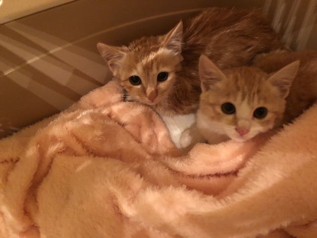 | 特徴(性格など) | 仮名:ミルクちゃん(茶白猫・短尻尾) 初期医療:済み ウイルス検査:陰性 3種混合ワクチン接種:済み 検便・ノミダニ駆除薬:済み 11月4日:950g とても可愛い茶白仔猫で、兄弟で保護しています。 11月4日に推定1.5ヶ月で保護しました。 健康状態もよく、食欲もありよくフードを食べています。 とてもおとなしい子で抱っこも大好きでゴロゴロです。 1匹でも可能ですが、兄弟一緒かお留守番の少ないお家を希望します。 |