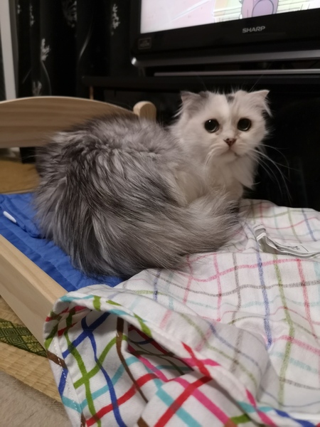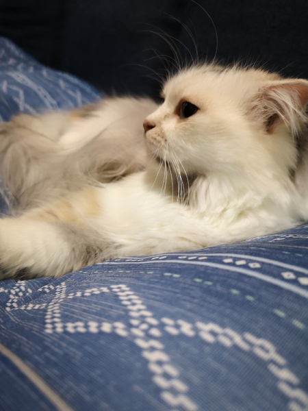 | 特徴(性格など) | 目の色がグリーンとブルーのとても綺麗な女の子です。 寝る時はいつも布団の中かお腹の上など冬場は湯たんぽ代わりです! 性格は甘えん坊で、トイレ、爪切り 問題なしです。 ペルシャの血が入ってるので目が弱くうるうるしています。 目ヤニをとる必要ありです。 |