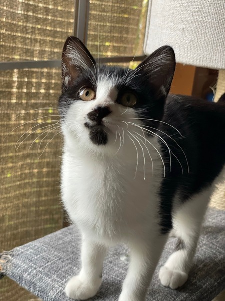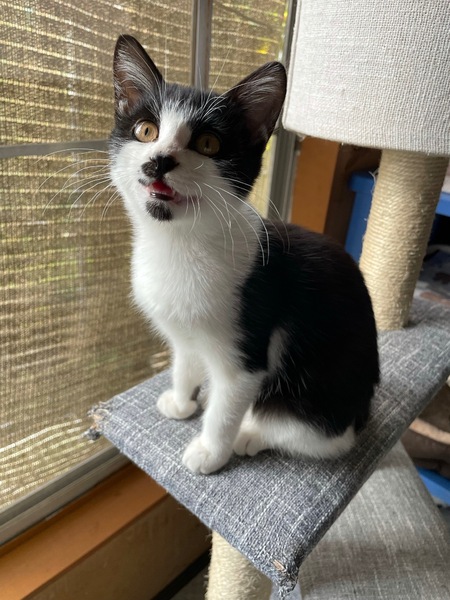 | 特徴(性格など) | 白黒、柔らかなつやつやな被毛です。 眼のふちまでの仮面が魅力的です。お鼻の模様は愛嬌ばっちりです! 性格も花丸です。猫にも人にも慣れております。 ウイルス検査(エイズ・白血病)陰性 ノミ・ダニ虫駆除済み |