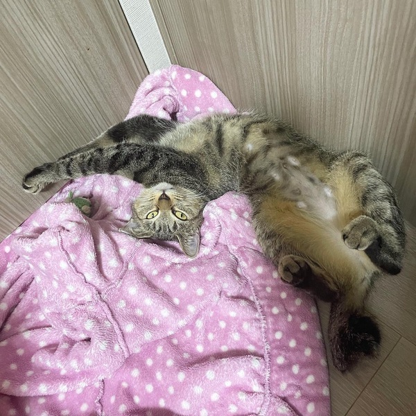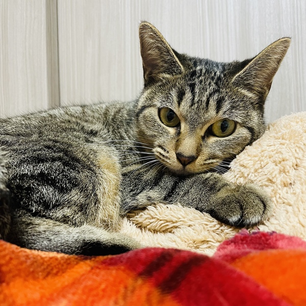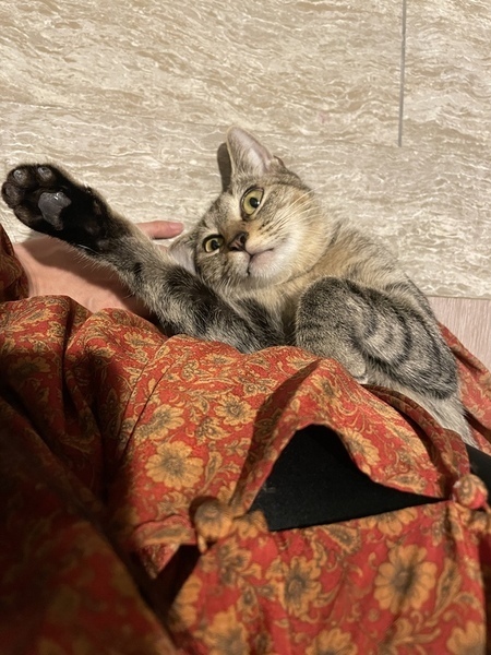 | 特徴(性格など) | キジトラ美猫のバンビちゃん(仮名)。 脚長スレンダー、小顔、鍵しっぽ(フック型)。 とってもかわいい猫ちゃんです。 甘えんぼでとても人懐こいです。 人も猫も大好き♡ 得意技はすりすり、だっこも大好きです。 爪切りなどのケアもおとなしくさせてくれます。 おうち慣れは完璧! はじめてでも飼いやすいかわいい子です(^^) |