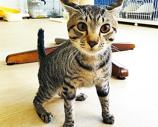 | 特徴(性格など) | 3c44とは兄弟関係の「ちゅぱ」。 すらっとしたキジトラの男の子です。 まだまだ、甘えん坊で兄弟の耳の裏をずーーーっと、吸っていることから付いた名前です(笑) オスはメスに比べて甘えん坊が多く、終生思う存分甘えさせてくださる里親様をお待ちしております! |