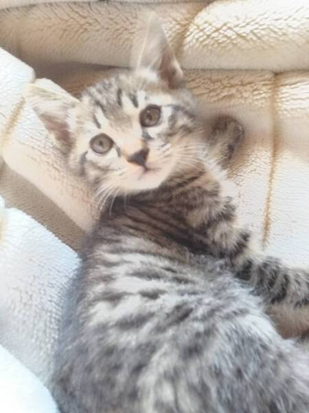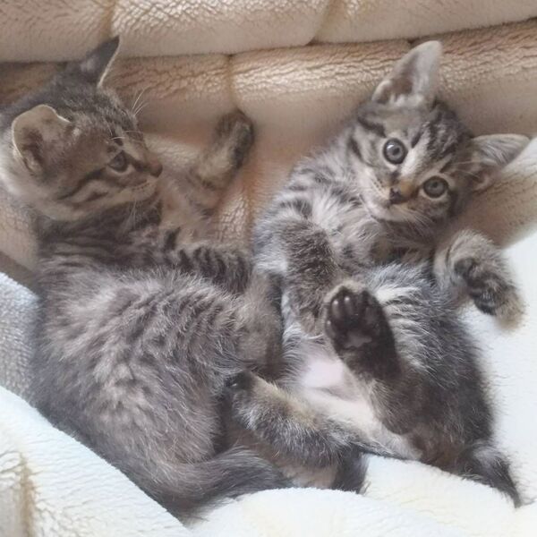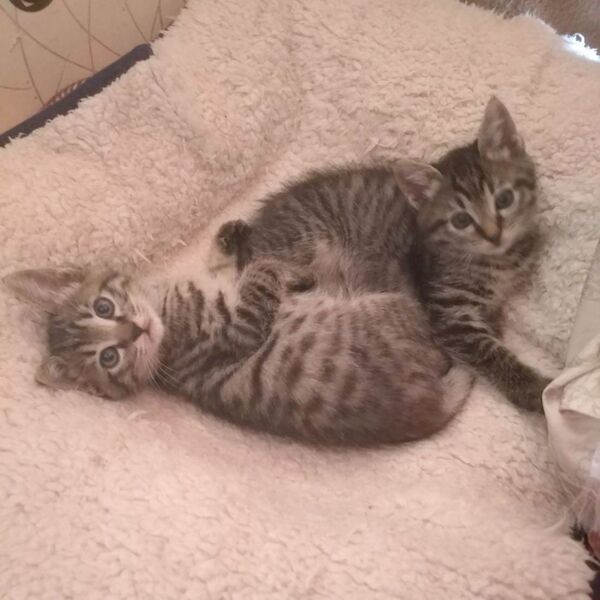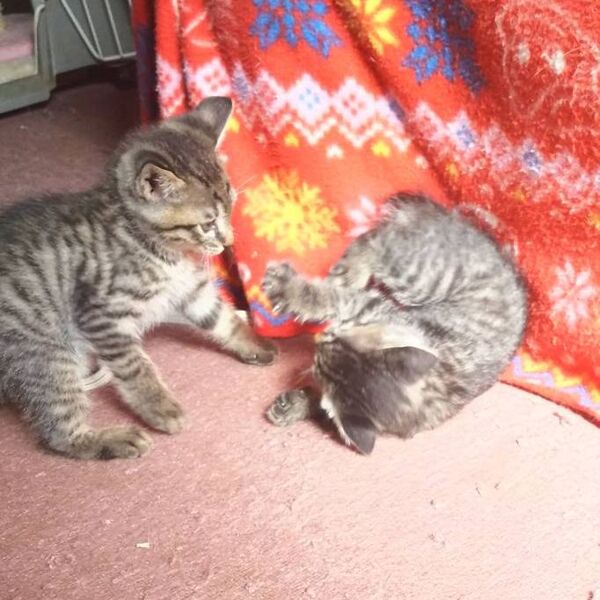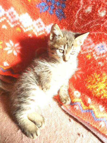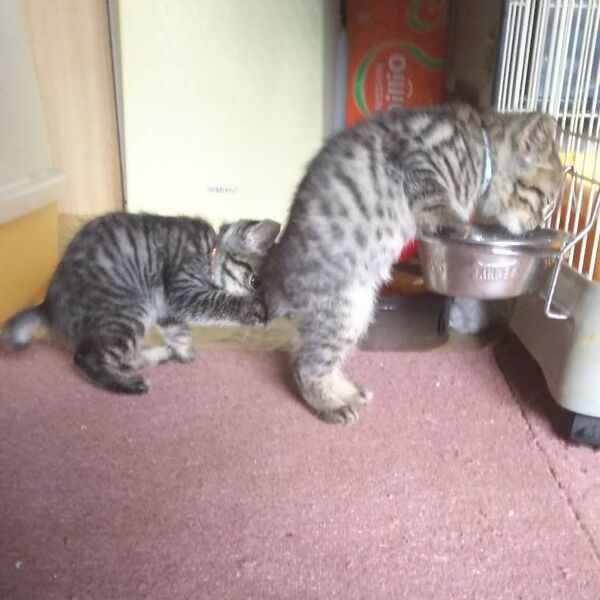 | 特徴(性格など) | 生後2か月のキジトラの男の子&女の子の兄妹です。仮名はアトムとウラン。 ノミダニ駆除済み。ご飯をモリモリたべ、よく遊び、よく寝て、天真爛漫です。見ているだけで可愛く癒されますよ。 ワクチン1回済み |