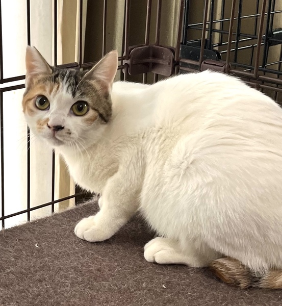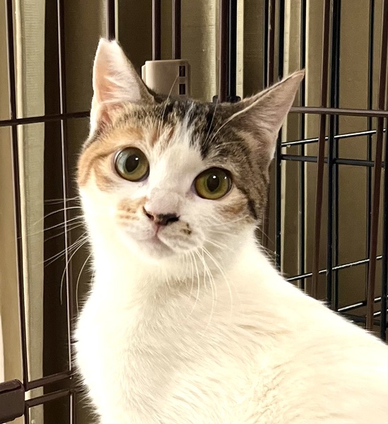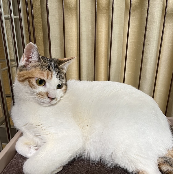 | 特徴(性格など) | 白多目のミケ猫さんです。 お目々もパッチリ! チョットビビリな面もありますが、ネコジャラシであそびだすと猫が変わる程です。 小柄で愛くるしいです? |
