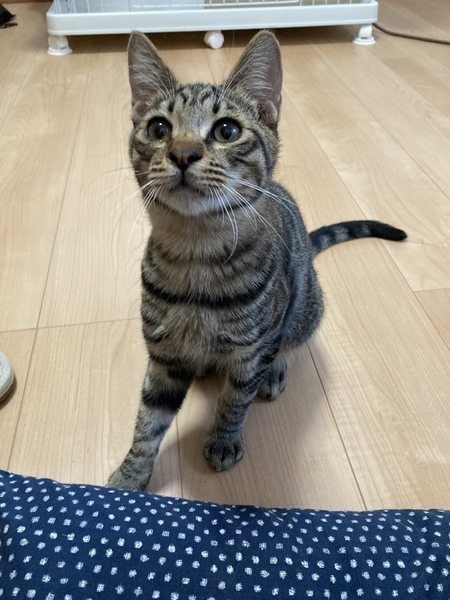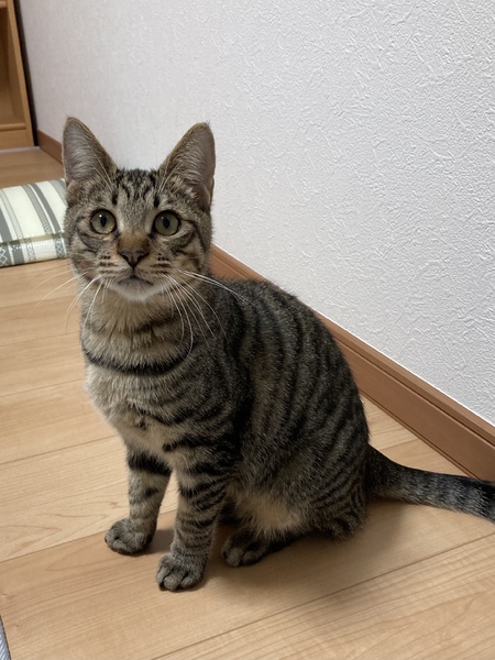 | 特徴(性格など) | 種類:キジトラ 性別:オス 体重:2.5kg 健康状態:猫エイズ《陽性》、白血病陰性 3種混合ワクチン1回接種済み、ノミダニ駆虫済 2021.11.24 去勢手術済 長くてまっすぐなしっぽがチャームポイントのイケメンの男の子です。とても人懐っこくて優しく、噛んだり引っ掻いたりしません。撫でられるのが大好きな甘えん坊くんです。 エイズキャリアの子ですが、他は健康に問題はありません。ストレスなく暮らすことができれば、発症することなく寿命を全う出来る子もいるそうてす。 ご飯もよく食べ、トイレもきちんと覚えています。 |