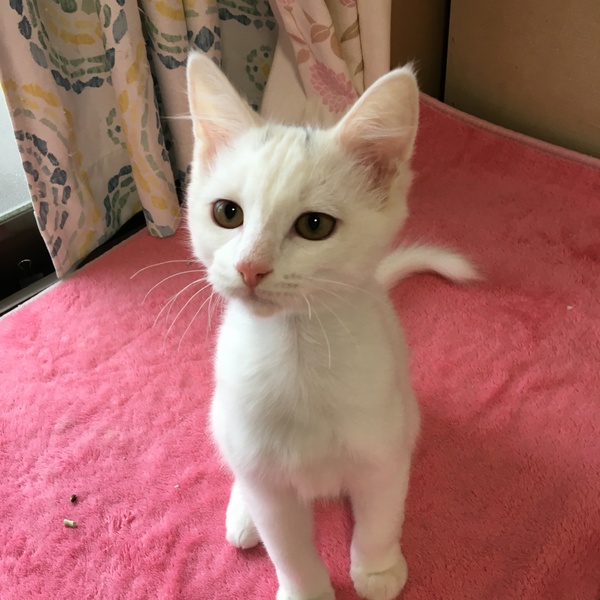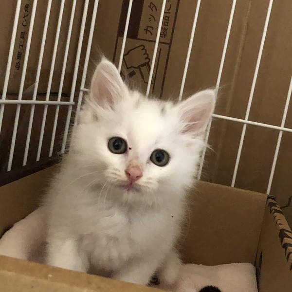 | 特徴(性格など) | 性別:オス 年齢:推定3~4カ月 仮名:レオ 毛色:白の半長毛 体重:1.84Kg(11/28測定) ウイルス検査:エイズ・白血病とも陰性 3種ワクチン2回実施済 レボリューション済(ノミダニ回虫の駆虫) 検便1回 まっしろでふわふわの柔らかい被毛で、少し毛が長い美猫のレオくん。 頭のてっぺんに少し黒い毛の部分がありますが、「キトゥン・キャップ」と言って 1歳になる頃に自然と消えるそうです。 最初はガリガリで体調もよくありませんでしたが、現在は元気いっぱい! 毎日チビくんと元気に遊んでは寝ています。 2匹ともお膝の上にものってくる甘えん坊です。 ★応募の際は、備考・その他をよく読みになりご検討をお願いいたします。 |
