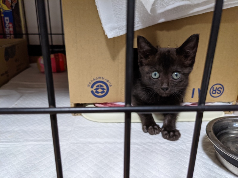 | 特徴(性格など) | 黒猫の女の子です。 病院の先生が言われるには、賢くて穏やかな性格。攻撃性もなく健康な子です。 |