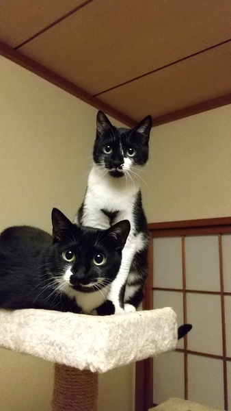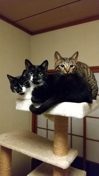 | 特徴(性格など) | ワクチン、手術のほかノミ、お腹の虫駆除もしております。エイズ、白血病検査も陰性です。保護した時から風邪もひいておらず健康体の元気な子達です。 黒白ハチワレ オス 仮名ろっく 身体は一番大きいのですが、一番甘々です。ご飯の時のスリスリが激しいです。トイレもちゃんとできます。 |