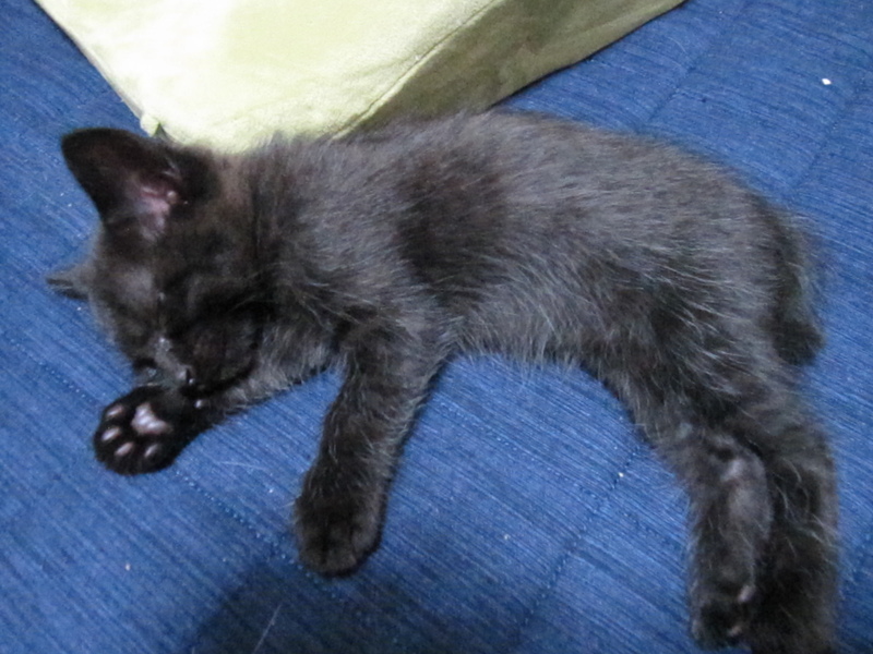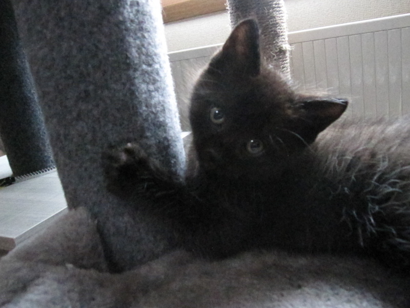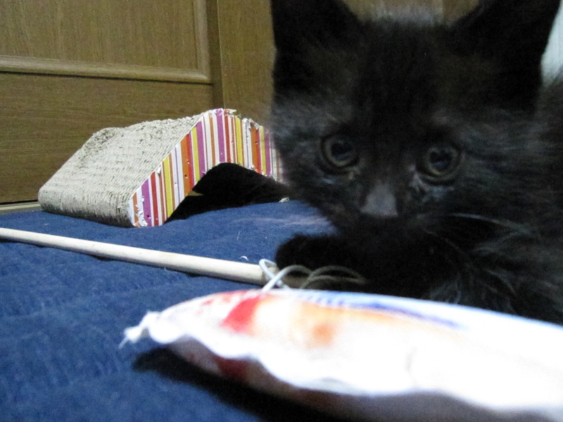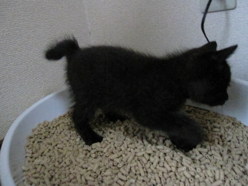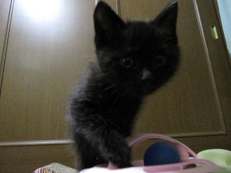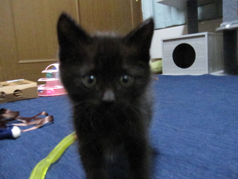 | 特徴(性格など) | しっぽは、ギザギザかぎしっぽ。写真移りイマイチですが、毛並みフサフサで、とてもかわいいですよ。人慣れしているので、撫でると直ぐにゴロゴロします。構ってほしい時には可愛い声で鳴いてアピールします。ちょっとビビリで、我が家の猫には威嚇モードです。 もうカリカリも食べています。トイレも大丈夫。 |