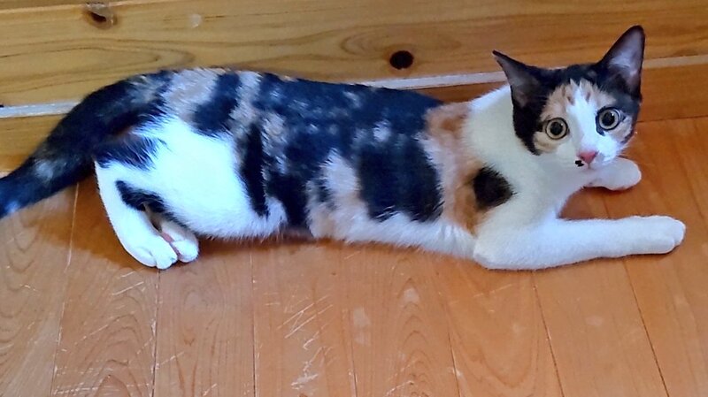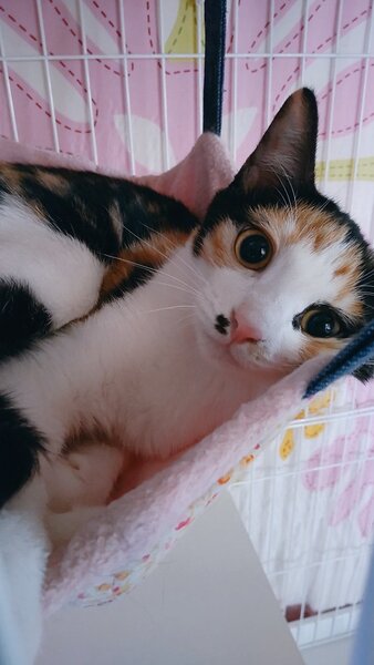 | 特徴(性格など) | 【仮名】みたらしちゃん 【性別】♀(メス) 【特徴】 はっきりした三毛猫さん、いわゆる牡丹三毛さんといわれる人気の柄です。 足がしっかりしているせいか運動能力が平均的な子猫さんよりも高いです。 キャットタワーもケージの天井もなんなく乗りますし、おとなの腰くらいの高さは 助走なしですいっと越えます。(平均的猫さんはするかな) ごはんはアズミラ、ワイソンをネットのキャットフードのお店と相談しながら購入しています。 トイレは花王のニャンともです。 活発な女の子です。 女子同士は難しい気がしています。 みたらしちゃんは遊びましょう、といくのですが、大人猫さんはシャーと言ったり 近寄るなオーラをだしたりしています。 元気な男の子のおうちなら、大丈夫かと思います。 (トライアルでみていただくようお願いします) 現在女子おとな猫さんと同じ部屋にいますが 他の部屋に出たがり、スライドのドアなどは開けてしまいます。 そういう子ですので、お迎えいただく場合は、脱走防止対策はしっかりお願いします。 |