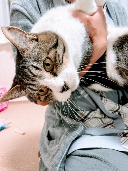 | 特徴(性格など) | 5キロサイズの丸い体で、とても気の優しい男の子です。年齢は推定です。 現在は保護主さんの家の中にいて、ケージから出しても激しく動き回ることもなく、じっと人の側に寄り添っているそう。 1年前から保護主さんの庭にくるようになったそうで、保護主さんが回覧版を持って外にいくと、行き帰り、後ろをついて歩いてきたそうです。 とてもおだやかで、人間に寄り添うタイプの癒し猫です。 |