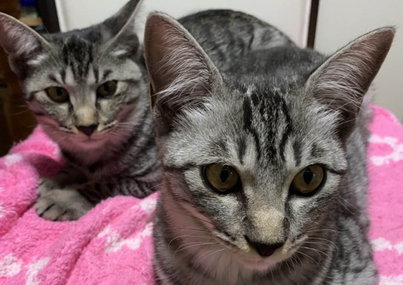 | 特徴(性格など) | 元気でお転婆なキジ猫姉妹です。 特にレオは甘えん坊で膝に乗ってきます。 2匹一緒に迎えて下さる方を希望しますが、必ずではないです。 |