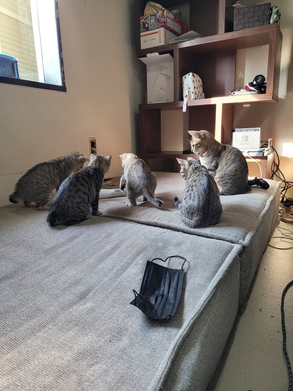 | 里親募集する理由 | 母猫は譲渡猫ちゃんで 譲渡していただいて動物病院で健康診断をしたところ妊娠中でした。 中絶させることも考えたのですが、夫婦で話し合った結果 体の負担などを考え 出産を8月にしました! 私の家にはすでに犬2匹、猫1匹、 私事ではありますが第二子を妊娠中の為 飼うことができません。 4匹の子猫のちゃん 大切にして頂ける里親さまを 探したくて投稿しております。 |