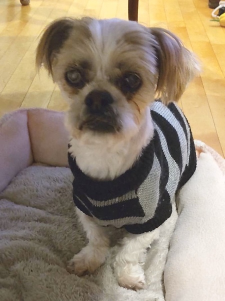 | 特徴(性格など) | ■特徴(仮の名前:ウィリー) シーズーmix♂推定9〜10歳 体重4.8キロ(痩せぎみ) ■性格・暮らし ・控えめで穏やかな性格です。 慣れれば甘えん坊だと思います。 ・他犬とも問題なく過ごせます。 ・右目は見えていませんが生活に支障はありません。 ・トイレは室内でも外でもできます。 ・お散歩は大好きです。 ・フリーでのお留守番でも悪戯はしません。 ■今までに行った医療行為 ・混合ワクチン接種 ・フィラリア抗原検査(-) ・検便 ・血液検査 ・去勢手術 ・マイクロチップ装着 ・歯石除去(抜歯) ・眼科フラップ手術 ・扁平上皮癌(奥の歯茎)切除 ■今後の医療行為 半年に1度程度の検査をお願いします。 |