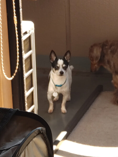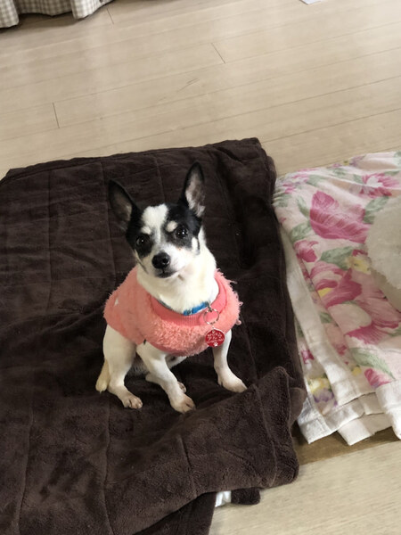 | 特徴(性格など) | ■特徴 チワワ♂白黒 推定5歳 体重 2.68キロ ■性格・暮らし ・とても臆病です。人や環境に慣れるのに時間がかかります。 ・他犬と問題なく接することができます。 ・ケージで就寝できます。 ・トイレトレーニング中です。 ・電車や車の移動はスリング内で大人しくできます。 ・体のどこを触っても大丈夫です。 ■今までに行った医療措置 ・6種混合ワクチン(10/18) ・フィラリア検査 陰性(10/18) ・駆虫薬の投与 プロコックス/ドロンタール (10/18) ・血液検査 (10/29) ・検便 (10/29) ・去勢手術 (11/11) ・マイクロチップ挿入(11/11) ・歯科処置(11/11) ■今後、行う予定の医療行為 ・狂犬病予防接種 |
