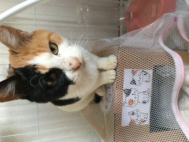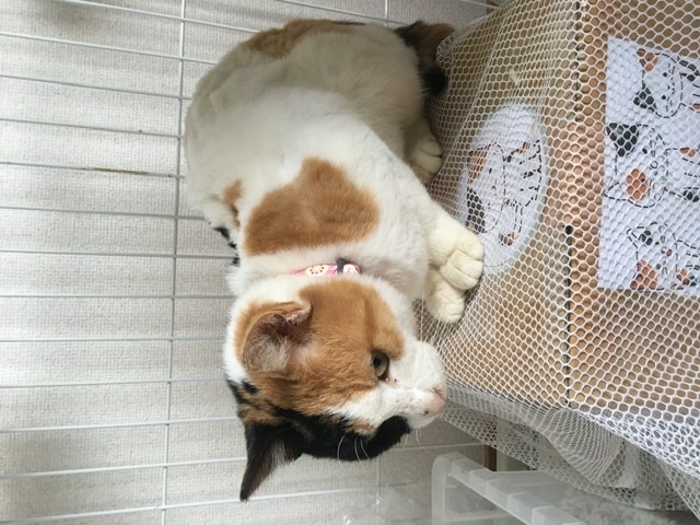 | 特徴(性格など) | 尻尾が特徴的な小柄な三毛猫ちゃんです。 尻尾はレントゲンを撮らないと分からないんですが曲がっています。本人は痛そうではないようで慌てる事はないですがいずれは医療にかけて頂き断尾が必要になる可能性もあるとの医師の見解でした。 血液検査の結果ネコエイズキャリアでした。発症はしていないのでストレスなく過ごせれば寿命は全う出来る猫ちゃんが多いと聞きます。 どうか、偏見をもたずご理解お願い致します。 |