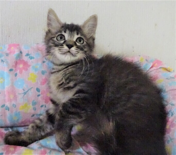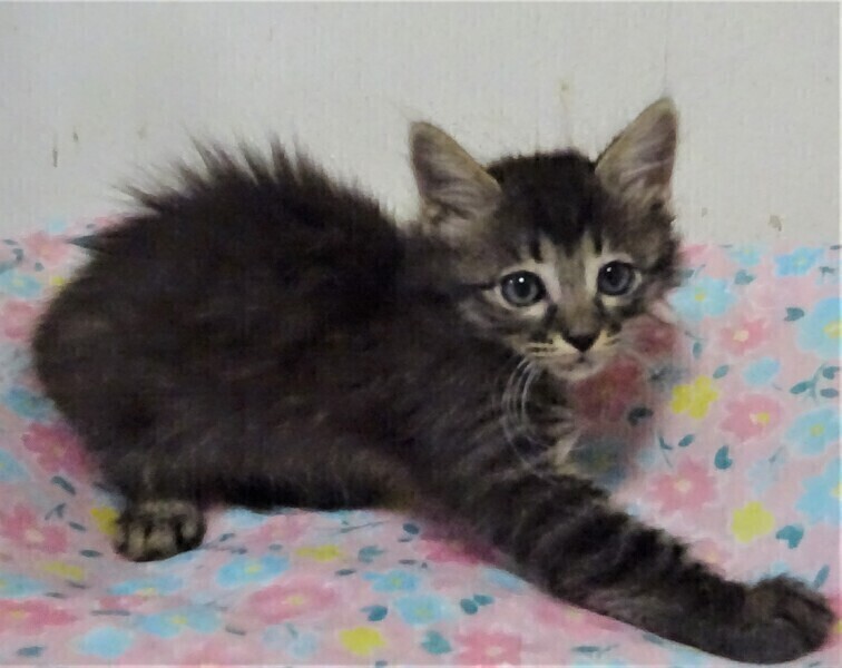 | 特徴(性格など) | 仮名: モナちゃん(メス) 毛色: 長毛キジトラ 性格: 少し怖がりのところもありますが、保護時はミルクだったので、人には馴れています。 目薬かと思って逃げる時もあります。 抱っこしたら怖がりません。 体の大きい大人猫は少し怖いようですが、同じ部屋にいても大丈夫のようです。 他猫ともなんとなく上手く付き合っているようですから、優しい先住猫ちゃんがいるお家でも大丈夫と思います。 ノミ取り済 検便済 駆虫済 3種混合ワクチン済 猫エイズ・白血病ウィルス検査はともに陰性 |