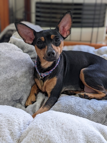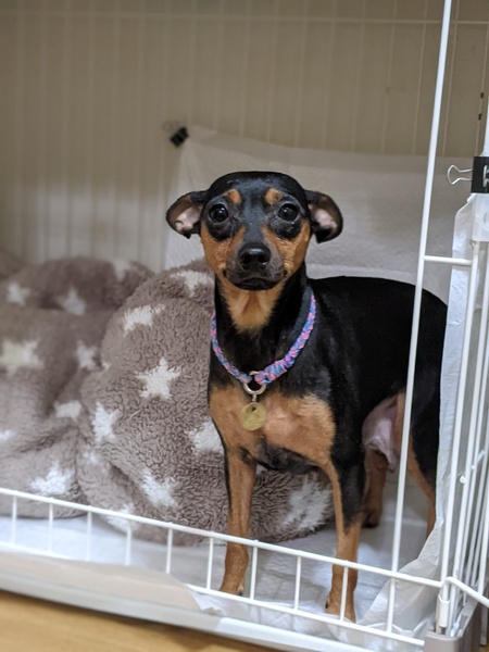 | 特徴(性格など) | 『2021D-096』ミニピン♀ソルベ ◆預かりブログ◆ ※ ご応募前に必ずお読みください。 https://ameblo.jp/coconeel-azu/theme-10115884367.html ◆特徴◆ 【保護経緯】繁殖屋放棄 【保護日】 2021.11.14 【仮名】 ソルベ 【性別】 ♀ 【犬種】 ミニチュアピンシャー 【年齢】 3~4歳 【毛色】 ブラック&タン 【体重】 4.9kg ◆性格・日常◆ 【性格】 怖がりで、人馴れに時間が掛かりますが、人に甘えたい様子です。 【トイレ】 トレーニング中 【お散歩】 トレーニング中 【留守番】 ケージで大人しく出来ます。 【就寝時】 ケージで大人しく眠れます。 【お手入れ】 シャンプー、爪切り、肛門線絞り等問題なく出来ます。 【犬との関係】 攻撃性見受けられません。 【猫との関係】 不明 【人との関係】 甘える素振りが見られます。 【その他】 ◆これまでに行った医療◆ 【混合ワクチン】 済み 【血液検査】 済み 【フィラリア検査】 済み(陰性) 【耳ダニ検査】 陰性 【避妊去勢手術】 済み 【スケーリング】 未実施 【マイクロチップ】 済み 【体外寄生虫】 駆虫済み 【体内寄生虫】 駆虫済み 【その他】 ◆今後行う予定の医療◆ 特になし |