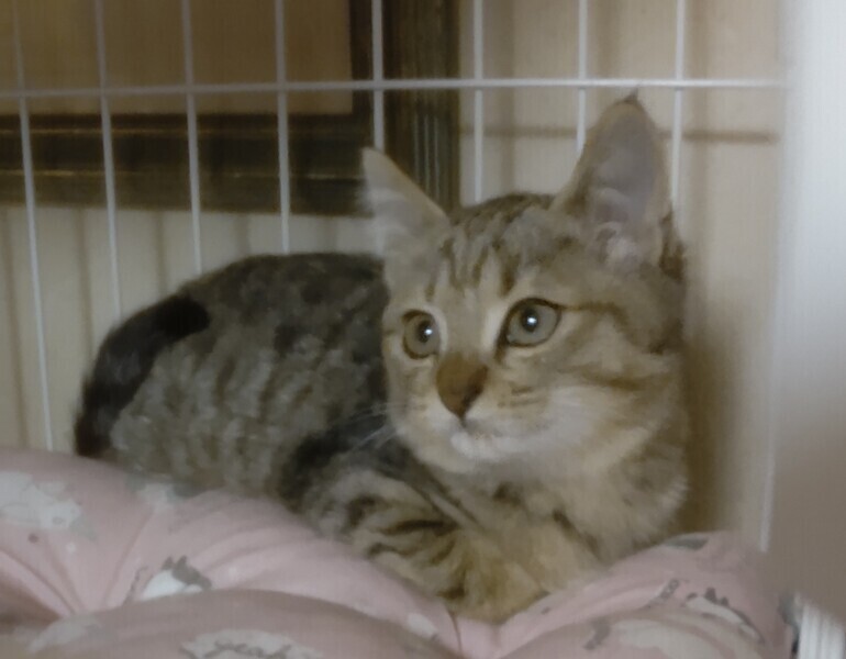 | 里親募集する理由 | 知人がTNRを進めるエリアを巡回する際に母猫と子猫2匹に遭遇。周辺でお話をお聞きしたところ、子猫が6匹産まれたうち2匹だけ残ったとのこと。交通量も多いため子猫を先に保護しました。母猫も保護して避妊手術をする予定です(可能であれば母猫も里親募集します)。 |