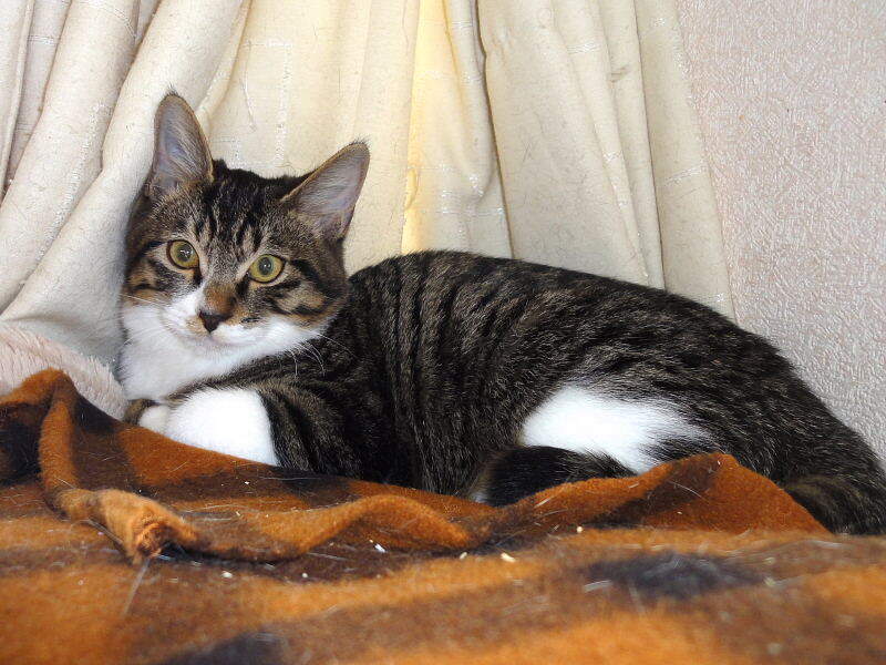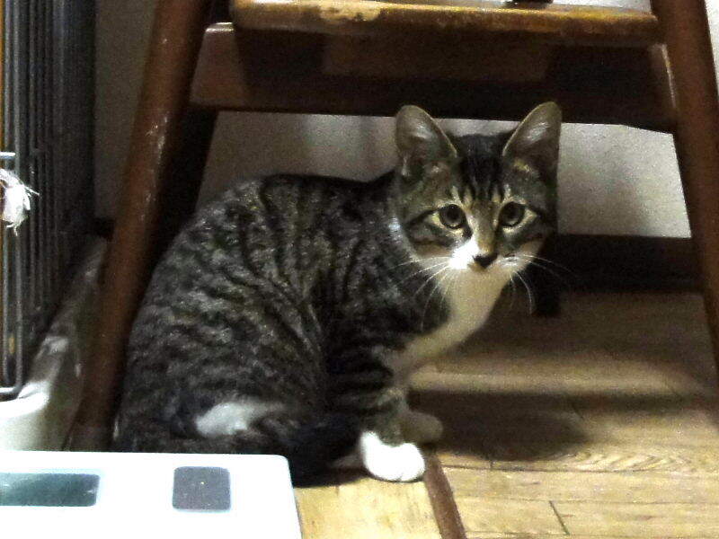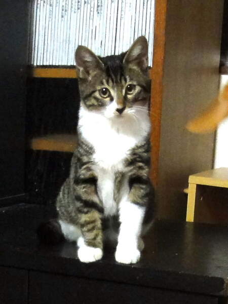 | 特徴(性格など) | キジ・白 エイズ・白血検査 他の兄弟1匹が(-) 駆虫検査(-) 一応1回のみ駆虫薬投与 四匹兄弟で保護、1匹だけの雄。 人馴れでき、抱っこするとのどをゴロゴロと鳴らします。 雌たちより、ちょっと大きくなりそうです。 |