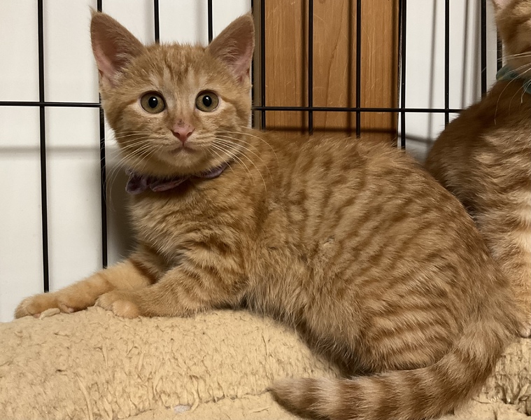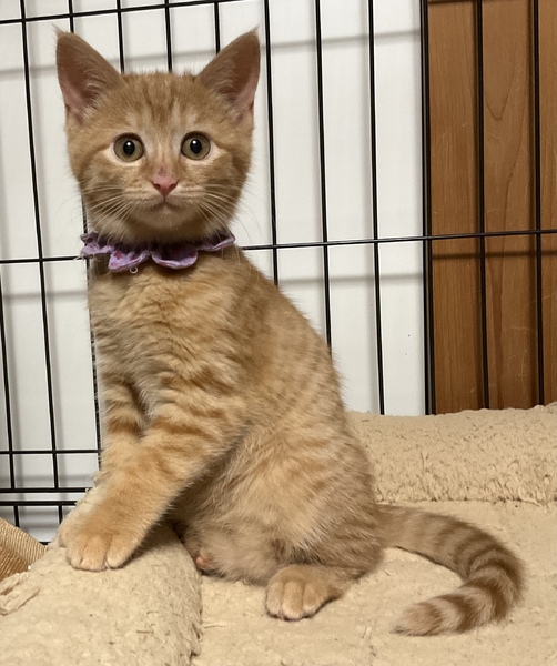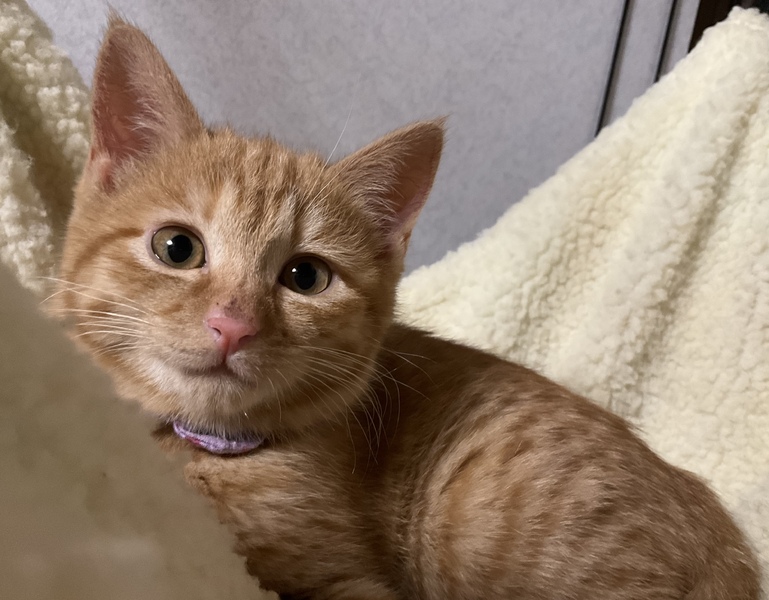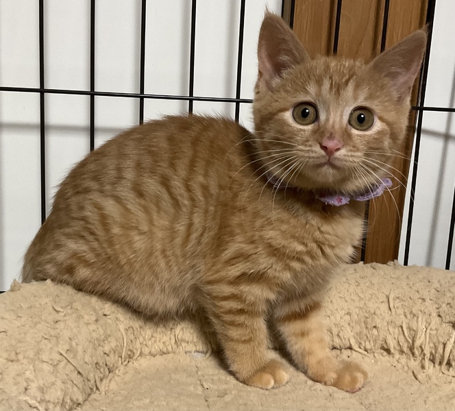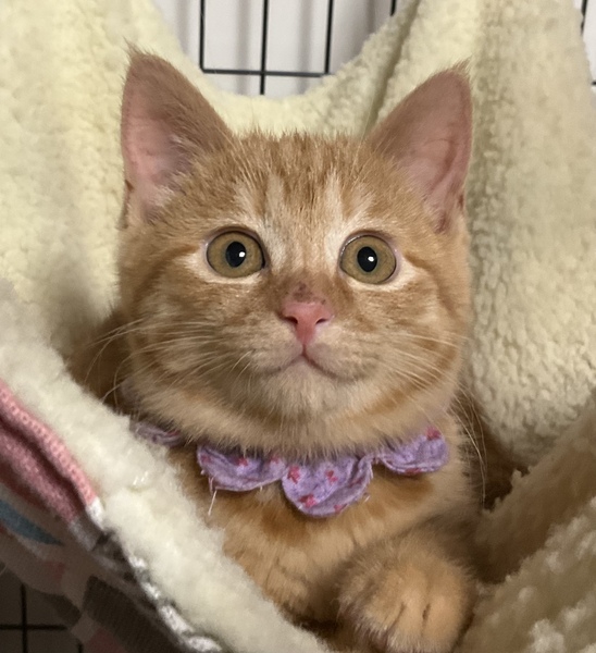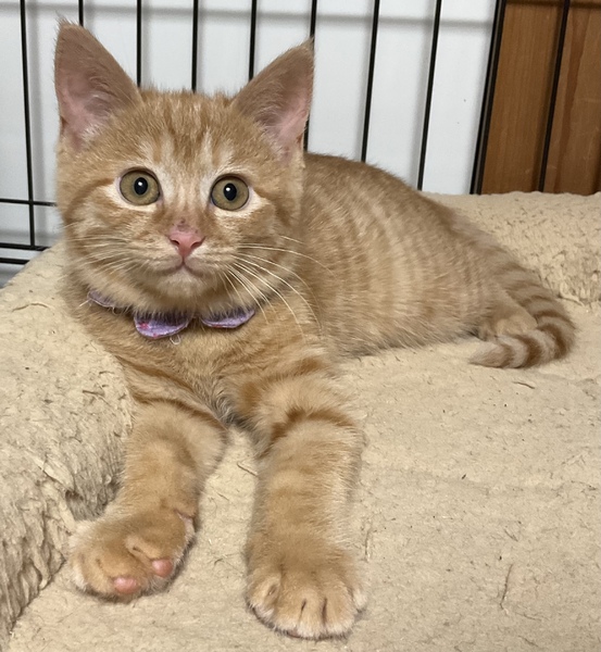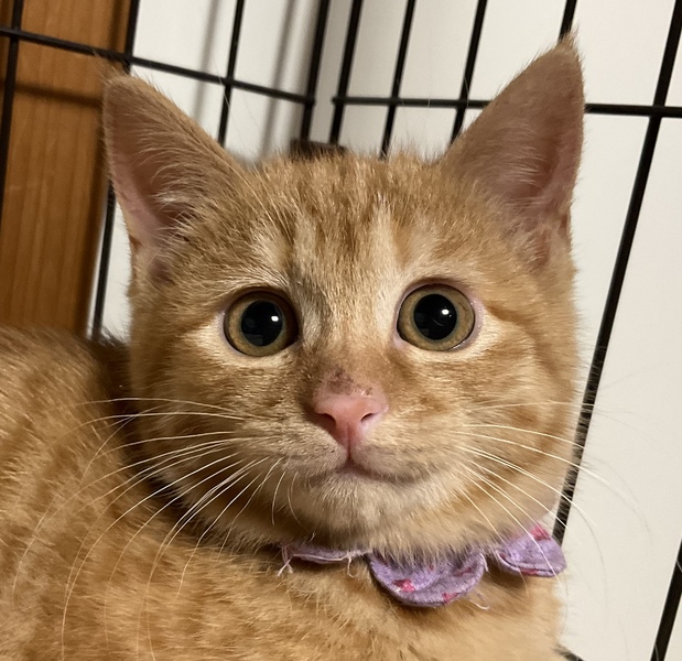 | 特徴(性格など) | まぁるいお顔にまん丸の瞳がキュートな、美しい茶トラ女子です。 被毛は兄妹の中で最も濃い茶色で、ダブルコートのように密に生えており、ふわふわの撫で心地です。 保護当時 全く人馴れしていませんでしたが、家猫修行を頑張っており、現在、ケージの中ではちゅーるをせがんで喉を鳴らすまでに馴れました。 怖がりで慎重ですが、元来は元気で活発な子だと思います。 心を許した人間には茶トラっ子らしく甘々になるかもしれません。 みかんの人馴れの過程も楽しんで育てていただけるようなご家庭に、みかんを託したいと思います。 元は人との関わりが全くなくお外で暮らしていた子ですので、人の急な動きや、知らない人間の出入りは警戒します。 みかんを怯えさせないよう、充分環境にご配慮下さい。 最初は必ずケージから馴らし、信頼関係が築けよく懐くまで ケージから出さないで下さい。 馴れないうちにケージから出してしまうと、家庭内野良となってしまい 人馴れが進まない可能性があります。 母猫を恋しがっているのか、猫が好きで 預かり宅の先住猫を恋しがって追いかけます。 相性もありますが、先住猫がいても問題ありません。 犬のことは怖がって威嚇しますので苦手なようです。 みかんは、育ち盛りで日々目まぐるしく成長しています。 みかんの人馴れしていく過程や育猫についての悲喜こもごもを、インスタグラムにアップしています。 みかんの性格や、家猫修行に励む日々の様子が垣間みえますので、是非ご覧下さいませ。 ↓↓↓ http://instagram.com/kemikemi1206 |