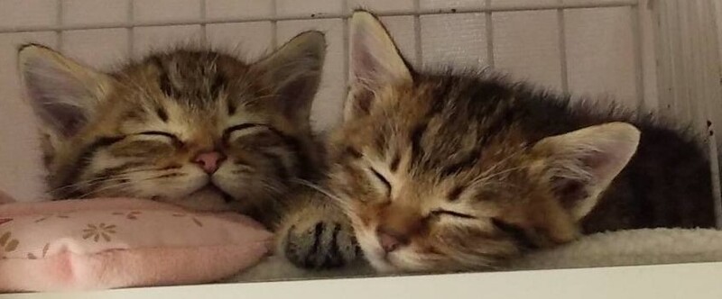| 特徴(性格など) | 快便快食!おもちゃで遊ぶの大好きな生後約2ヵ月のキジトラ兄弟です! 保護時はニンゲンを怖がってシャーフー言っていましたが、徐々に慣れてチュールを手から食べてくれるようになったり、おもちゃで遊んでくれる様になりました。 最初からトイレも完璧です。 まだ保護して間もないので、性格や人馴れ具合はこれから明らかになってくると思いますが↓ 【マー君】11/11時点の体重725g 好奇心旺盛でごはんやおもちゃに最初に寄ってきます♪ 寂しがり屋なのか、ママが恋しいのか、ママを呼ぶように鳴くこともありました。 最近は指で撫でるとスリスリするようになりました~(カワイイ!) 【ブル君】11/11時点の体重は843g おっとりしていて、肝が据わってる感じ?(子猫なのに(笑)) 抱っこもなんのそので嫌がりません。 でもまだ急に近づくとびっくりしてシャーしちゃう事も。 ツンデレ君なのかもしれません。。。 見ていて飽きない超可愛い子猫ズです。 ママ猫はお顔はキジトラですが、ボディがアメショ柄の様なマーブル模様の美人ママ。 この2匹が里親様を待つまでの仮の名前は、ママ猫のボディの柄「マーブル」に由来して、 マー君・ブル君になりました。 |