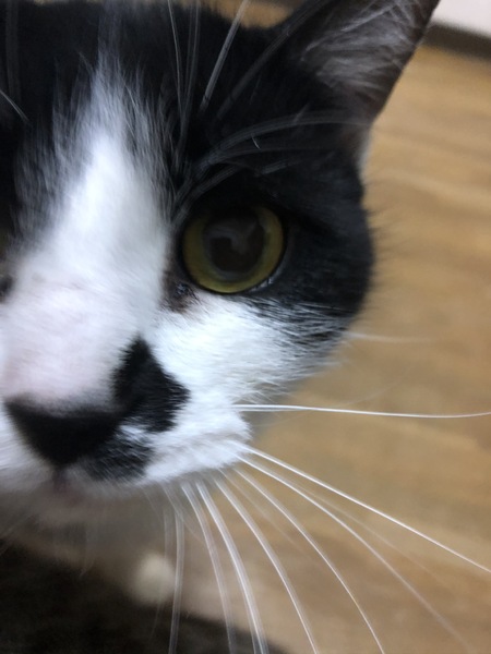 | 特徴(性格など) | 白と黒のぶち柄、性格は大人しく、手でフミフミするのが癖です。無駄に鳴くこともなく、家でな7匹の猫を飼っておりますが皆と仲良くできる1番優しい子です。 | ||