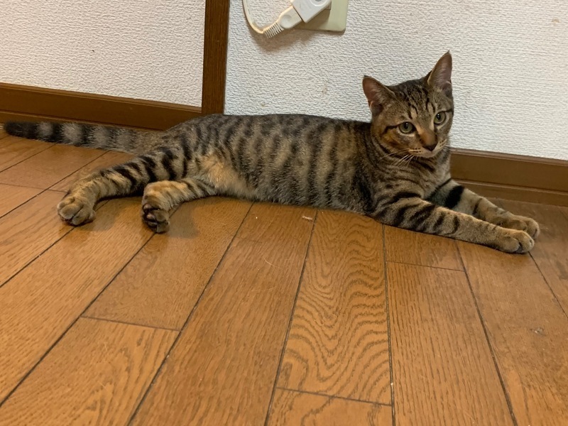 | 特徴(性格など) | 元気いっぱいキジトラの男の子。遊ぶのが大好きです。 「毎日、いっぱいお部屋の中で遊んでるよ。でも時々元気良すぎて お兄ちゃん、お姉ちゃん猫に怒られちゃうんだ。 僕の写真を見た人にイケメンって言われちゃった。」 |