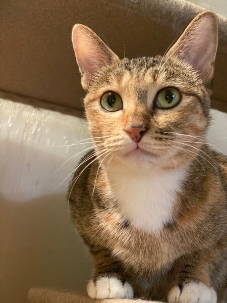 | 特徴(性格など) | 色が薄目の三毛で可愛らしいお顔です♪ 人馴れ抜群で甘えん坊です☆ おとなしく爪も切らせてくれちゃいます♪ はじめての人でも飼いやすい子です♪ |