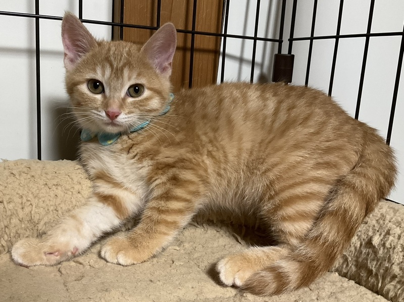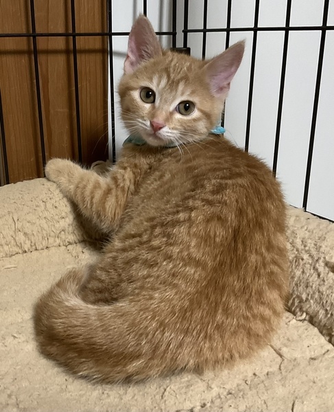| 特徴(性格など) | すらりとしたお顔と立ち姿が美しい、整った顔立ちの美猫です。 3兄妹の中で一番人馴れしていて、真っ先に人の手の心地よさを覚えました。 なでなですると気持ちよさそうに身を委ね、ゴロゴロと喉を鳴らします。 また、一番食いしん坊で、ちゅーるに真っ先に飛びついてきます。 しかし、人との関わりが全くなくお外で暮らしていた子ですので、人の急な動きや知らない人間の出入りは警戒します。 かりんを怯えさせないよう、充分環境に配慮して下さるご家庭を希望します。 最初は必ずケージから馴らし、信頼関係が築けよく懐くまで ケージから出さないで下さい。 馴れないうちにケージから出してしまうと、家庭内野良となってしまい 人馴れが進まない可能性があります。 母猫を恋しがっているのか、猫が好きで 預かり宅の先住猫を恋しがって追いかけます。 相性もありますが、先住猫がいても問題ないかと思います。 犬のことは怖がって威嚇しますので苦手なようです。 一緒に生まれ育った、兄妹のゆずととても仲良しで、肩を寄せ合って暮らしていますので、ゆずと一緒に迎えて下さるご家庭を希望します。 (1匹のみをご希望の方は応募をご遠慮下さい) 兄妹一緒ならお留守番があっても寂しくないと思います。 かりんは、育ち盛りで日々目まぐるしく成長しています。 育猫についての悲喜こもごもを、インスタグラムにアップしています。 かりんの性格や、家猫修行に励む日々の様子が垣間みえますので、是非ご覧下さいませ。 ↓↓↓ http://instagram.com/kemikemi1206 |