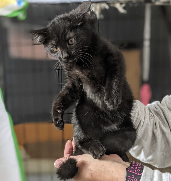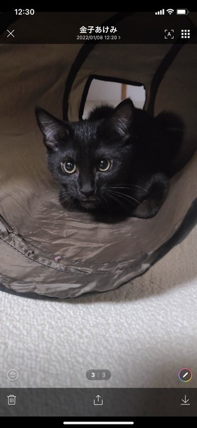 | 特徴(性格など) | ◆ピーカンパイちゃん お腹なでなで好きな黒猫の女の子 ◆ピーカンパイちゃん ビビりの甘えん坊な黒猫女子 ●月齢の小さな子猫は、以下の条件についてご了承の上で応募をご検討下さい。 ◆高齢者のみのご家族からの子猫のお申し込みはお断りさせて頂きます。 ◆お留守番の少ないご家庭を希望します。 ◆小さなお子様のいるご家庭は状況によりお断りする場合がございます。 ○神奈川県横浜市内にて兄妹猫5匹で保護されました。 ○推定3ヶ月半くらい(2022年1月上旬時点)の黒猫の女の子です。体重は1.5kgくらい(2022年1月上旬時点)です。 ○尻尾は中ぐらいの長さで、先が曲がった鍵しっぽです。 ○お腹に少しだけ白い毛が混じっています。 ○ビビりの甘えん坊さんです。 ○抱っこはあまり好きではないですが、甘えたくなると寄ってきてスリスリしてくれます。 ○他の猫さんともすぐに仲良くなれます。 ○人馴れ訓練は進んでいますが、「シャー」はご挨拶なのかまだ健在です。 ○元気にすくすく育っています。 ○まだ小さな仔猫のため、お留守番の少ないおうちをお待ちしております。 ★ワクチン1回済み。 ★猫エイズ、猫白血病ともに陰性。 ★不妊手術は成長と体調を見て実施予定です。 ◯YouTubeにも動画をあげています。こちらもご覧下さい。 なでなで大好きなピーカンパイ https://youtu.be/-jYjA022HKU ○1/9(日)開催の譲渡会に参加予定! 以下の要項をお読みいただき、ぜひ会いに来てください♪ ☆★☆★☆★☆★☆★☆★☆★☆★☆★☆★☆ ~1月9日(日)新山下にて譲渡会開催!~ ◎場所・・「島忠ホームズ 新山下店」 神奈川県横浜市中区新山下2丁目12−34 JR根岸線「桜木町駅」より横浜市営バス(8.26.58.148系統)乗車「貯木場前」より徒歩約5分 みなとみらい線「元町・中華街駅」より徒歩約15分 ◎日程・・1月9日(日)(雨天決行) ◎時間・・12時から15時 【14時30分受付終了】 (会場に利用可能な無料駐車場がございます。そちらをご利用くださいませ。) 今回はコロナ対策のため、制限を設けての開催となります。 *3密対策のため、当日10時より全時間分の整理券を配布いたします。整理券枚数には限りがございますので、上限に達した場合はご入場できません。 *各回15分 *各回先着3組様 *参加の際は、マスクの着用、アルコール消毒のご協力をお願いいたします。 *当日は検温の上、体温が37度以上の方はご参加いただけません。 *混雑状況により、中止させていただく場合がございます。 ※参加予定の犬猫は体調により参加できない場合があります。ご了承ください。 ☆★☆★☆★☆★☆★☆★☆★☆★☆★☆★☆ |