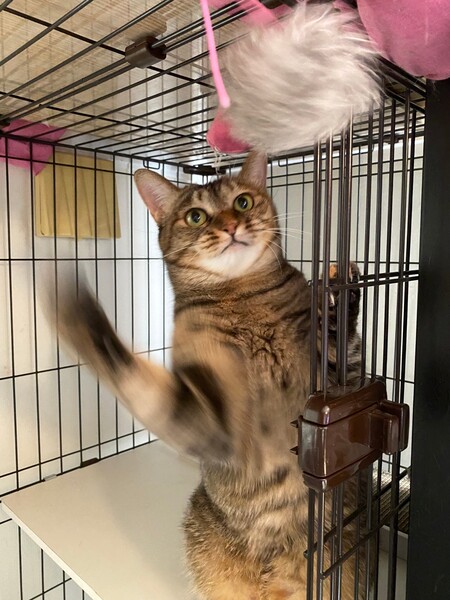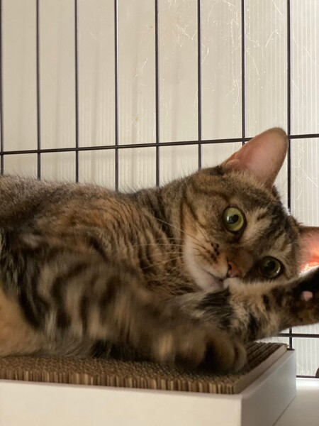 | 特徴(性格など) | 猫らしいツンデレ女子です♪ 毛触りのよいキジトラちゃん♪ 人馴れ修行中ですが馴れたら一緒に寝てくれます♪ 猫飼育経験者限定です♪ |