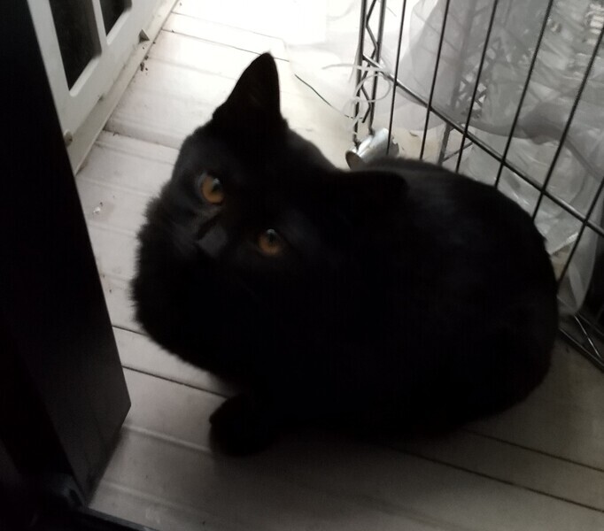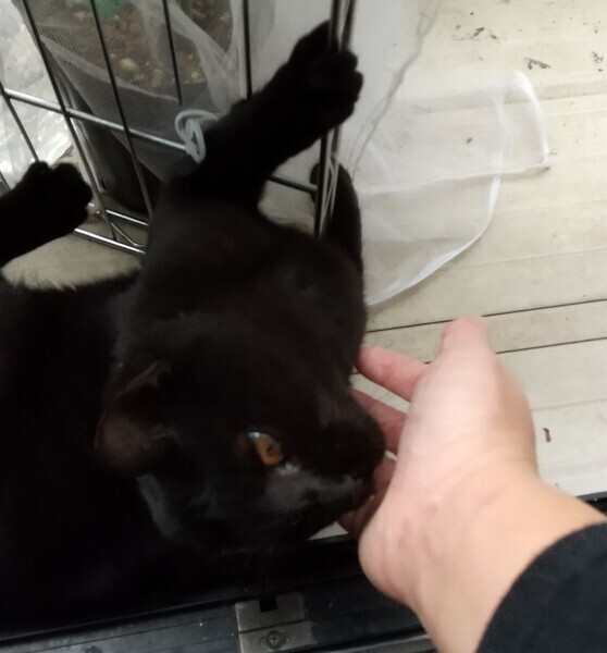 | 特徴(性格など) | 警戒心はありますが、撫でるとゴロゴロ喉を鳴らしスリスリしてきます。子猫らしくやんちゃなときもあります。 黒猫ですが、ほんの数本白い毛が生えています。発見当時(夏頃でおそらく生後1~2ヶ月頃)、額と体に大きな怪我をしていたのでその名残かもしれません。目は茶色、しっぽは長くて真っ直ぐです。11月22日に去勢手術を受けました。 |