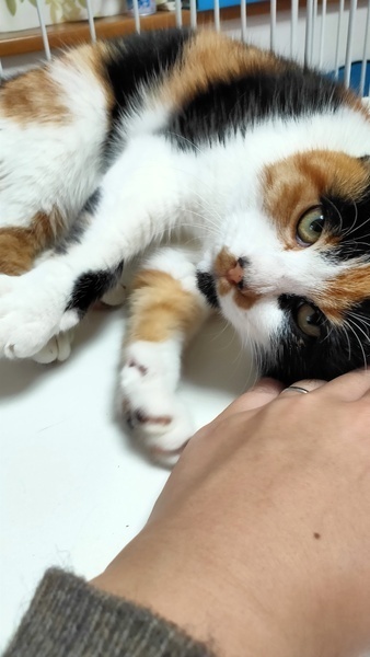 | 特徴(性格など) | 小柄でまだ仔猫? すごく人懐っこく甘えん坊! 人間大好き!ゴロゴロふみふみすぐにしちゃいます!お風呂と爪切りは少し苦手だけど大人しくやらせてくれます!猫エイズ、白血病もなく元気です!幸せの鍵しっぽです! |
