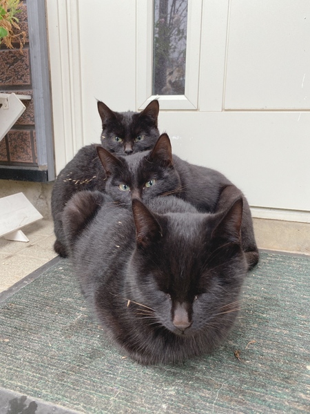 | 特徴(性格など) | 3匹黒です。 1番大きい子は近付いても逃げずに触れますが、他の2匹は野良猫なので人に慣れて居ません。 | ||