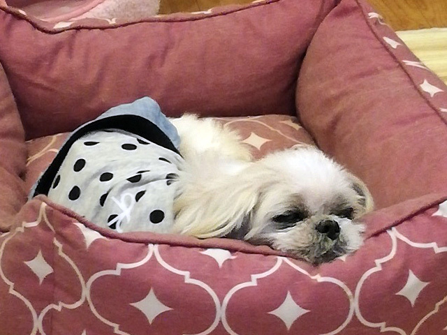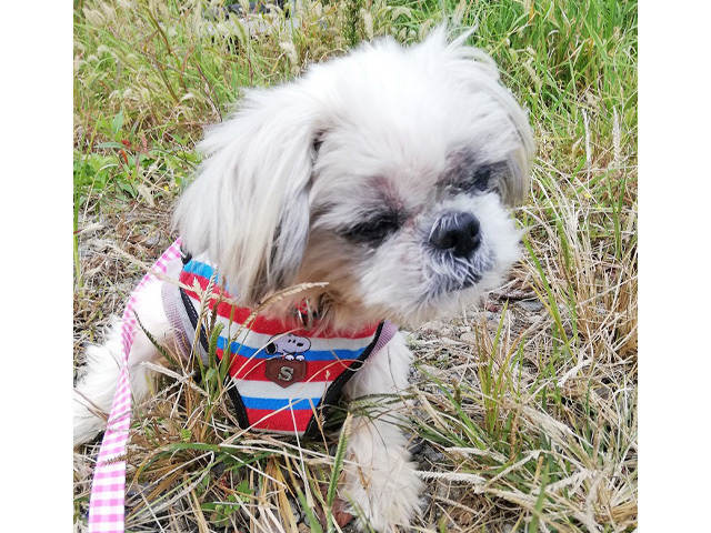 | 特徴(性格など) | ■ 基本情報 ・管理番号 【210917-29】 ・犬種・性別・名前(仮) シーズー ♀ のどか ・年齢・体重 推定13~15歳 体重 4.6kg ・特徴 白×薄茶、耳の先が少しグレーの毛色です。 股関節変形があるため歩き方が少し不安定な感じですが、よく動けます。 ・性格 マイペースなシーズー女子です。人にも犬にも穏やかに接することができます。 警戒したり怖がったりということはなくなかなか肝の据わったレディです。 ■ 暮らしについて ・日常過ごす場所 普段は室内フリーで過ごしています。 ・食事 良質な原材料を使ったプレミアムフードのシニア用を食べています。 心臓の薬があるのでちょっとトッピングをして薬を一緒に食べてもらっています。 好き嫌いなくよく食べてくれます。固いガムのおやつもしっかり噛んで食べます。 ・トイレ お散歩の時に排泄をすることもありますが、室内で我慢する外派ではありませんので 天候悪く時にお散歩に行かなくても排泄できます。 シーツにはこだわらない派なのでオムツをしています。 ・散歩 左股関節変形のためにしっかりは歩けないのでお散歩というよりは、ゆっくりのんびり外気浴をしています。 目がほぼ見えていないので足元や障害物には気を付けてあける必要があります。 カートでのお散歩も落ち着いてできます。 ・お留守番 フリーで問題なくお留守番できます。サークルの中のベッドで寝ていることもよくあります。 ・外出 車酔いはありません。ハードキャリーで問題なく車に乗れます。 ・お手入れ シャンプー、ブラッシング、耳や目のケアも従順にさせてくれます。 口の周りを触られるのはあまり好きではないのでやめて、とカプカプしようとします。 ・他犬との関係 とくに問題なく過ごせますが、目があまり見えないために近づきすぎたりすることがあります。 空気は読めません。 ・人との関係 とくに問題はありません。 積極的に甘えてくることはありませんが、その分依存心の強さもなく人開のペースで生活することができます。 ふれあいたい時には素直に応じてくれます。 ・お願いしたいこと トリミング必要犬種で皮膚も弱いので、日々のブラッシングや適宜のシャンプーをお願いします。 心臓の薬を飲んでいるので定期的な検査と投薬の継続をお願いします。 ドライアイが悪化しないように気にかけ点眼などをお願いします。 ■ 医療管理について(実施日) ・混合ワクチン 接種検討中 ・狂犬病予防注射 免除 ・フィラリア抗原検査 - (9/17) ・不妊手術 ヒート後経過観察中 ・マイクロチップ 未処置 ・健康チェック 〇 (9/17) ・スケーリング 検討中 ・便検査 〇 (9/17) ・その他の医療措置 フィラリア駆虫薬投薬 月1回、全身エコー検査、血液検査 ・必要な継続医療 心臓肥大のため服薬をしていますので定期的なチェック、毎日の投薬をしています。 引き取り時重度のマラセチア皮膚炎のために服薬・シャンプーケア→マラセブシャンプーで週1回程度のシャンプーケアが必要です。 ドライアイのため、点眼をしています。 ・現在の一時預かり先 千葉県鎌ヶ谷市 ・預かりスタッフ あんな ・預かりブログ ちばたりあんな(2021/9/26~) 「のどか」 ・http://chibatarianna.jugem.jp/?cid=281 「S★KG」 ・http://chibatarianna.jugem.jp/?cid=218 ・引取時の様子 ・http://chibatarianna.jugem.jp/?eid=7264 |