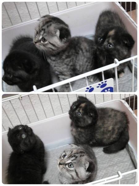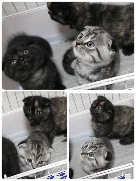 | 特徴(性格など) | 見た目はスコの特徴がよく出ています。 まんまるで可愛い子たちです。 姉妹の中で中間の大きさです。 |
