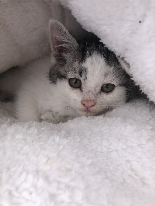 | 特徴(性格など) | 白毛にグレーと黒の模様が入っています。 生まれて2ヶ月ほどの子猫かと思います。 トイレはできています。 活発で元気いっぱい遊んでいます。 |