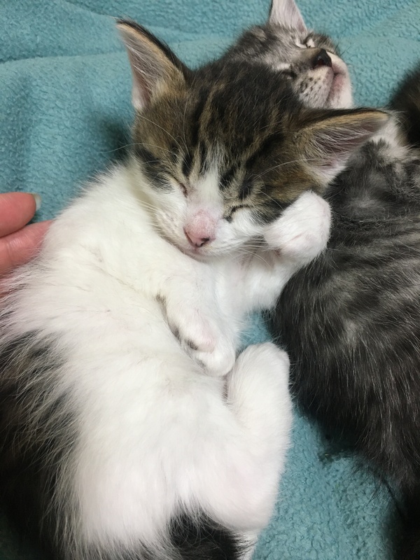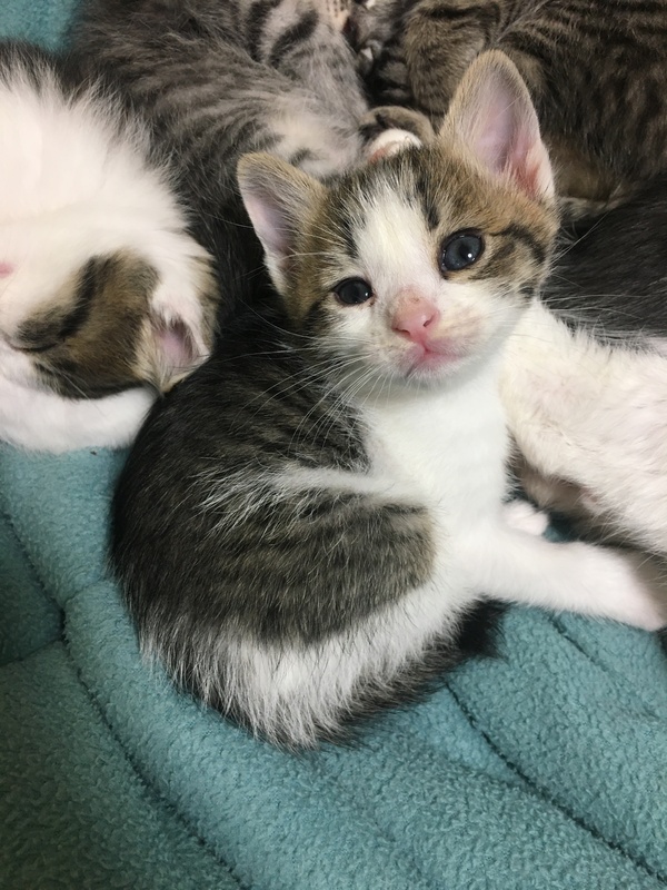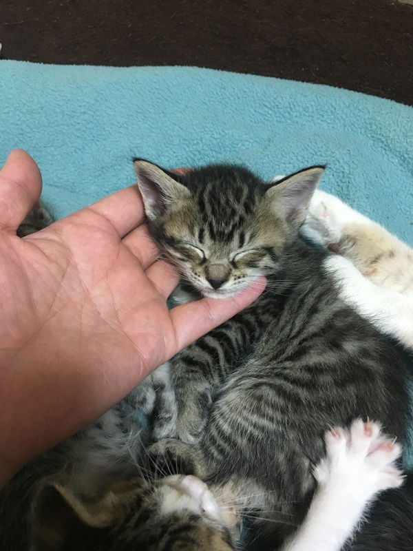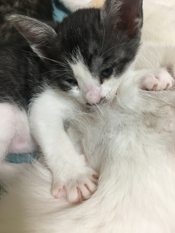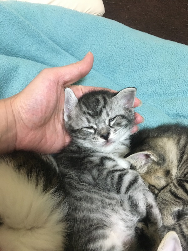 | 特徴(性格など) | 現在、丁度1ヶ月の子猫5匹です。 キジ白 3匹(オス)好奇心旺盛 キジ茶(メス)マイペース キジグレー(オス)おっとり ◆健康状態 多少目やにが出ていますが、目薬点眼して元気です。 現在トイレトレーニング中、まだ母乳です。 ノミ駆除済。 人馴れしています。 ワクチン接種はまだ小さいのでできていません。 |
