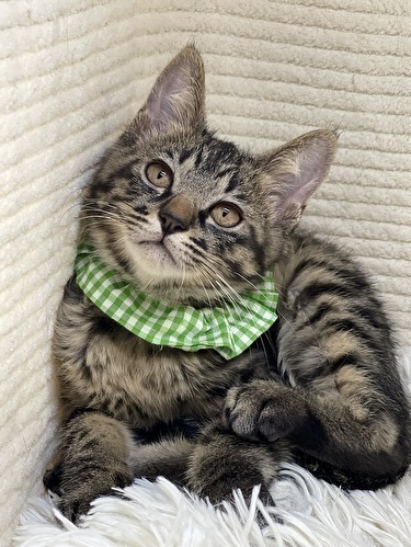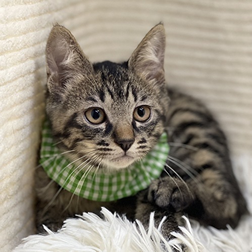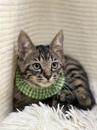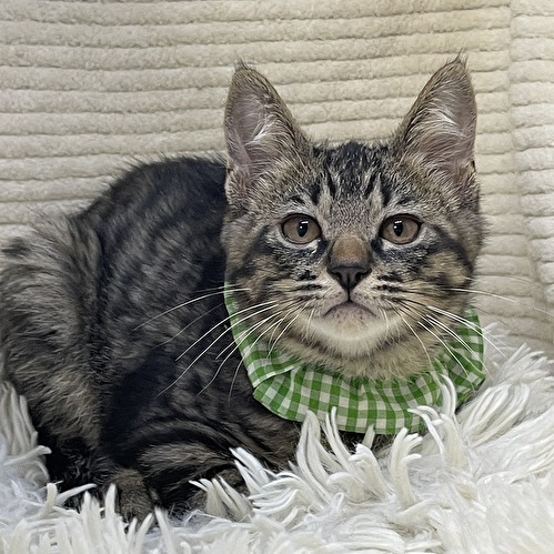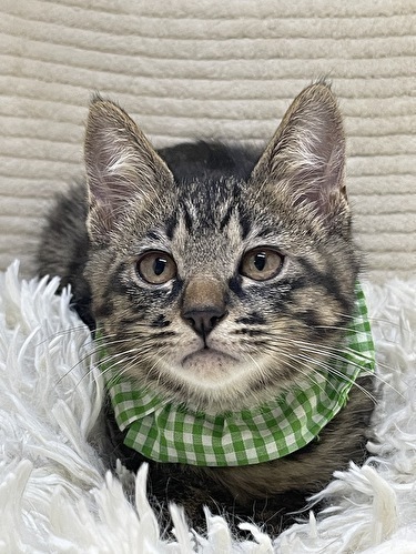 | 特徴(性格など) | 【仮名】集人くん 【性格】「集☆大☆成」キジトラ3ブラザーズの集人くん♪ あまりに似ていて見分けがつかなかったので グリーンカラーの集人くんです! 垂れ目なのかな?ちょい情けないような コマッタ顔をしてるような('ω') のほほ~んぼんやり顔なんです(笑) お家に来たときはシャーでしたが攻撃ナシ♪ シャーシャー言ってたかと思うと撫でる前に ゴロゴロ喉を鳴らす音が聞こえてきたり~ 撫でればヘソ天になるんです♪ 毛布チュパチュパもしたりしてま~す(笑) わりと不思議くん?天然キャラ?カモです♪ 兄弟や同世代のお友達と夜な夜な 運動会を開催していますので 兄弟の大雅くん、成樹くんとのペアでの お迎えを希望します♪ ※サ・キジトラ!!3ピキ一緒にお迎え( ゚Д゚) というツワモノ大募集ですよ(笑) ※仲良しのんちゃんとのペアのアリですよ♪ ※1匹譲渡不可 |