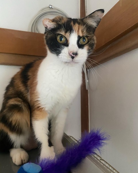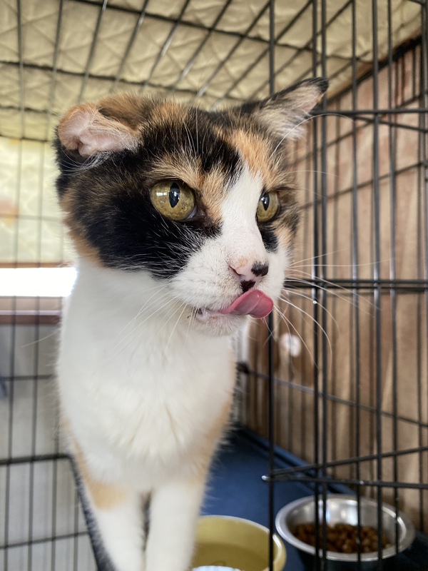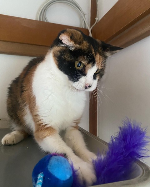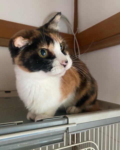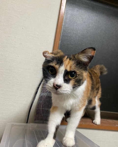 | 特徴(性格など) | 三毛猫。 右耳が耳血腫。 尻尾は半端でカギ尻尾。 |