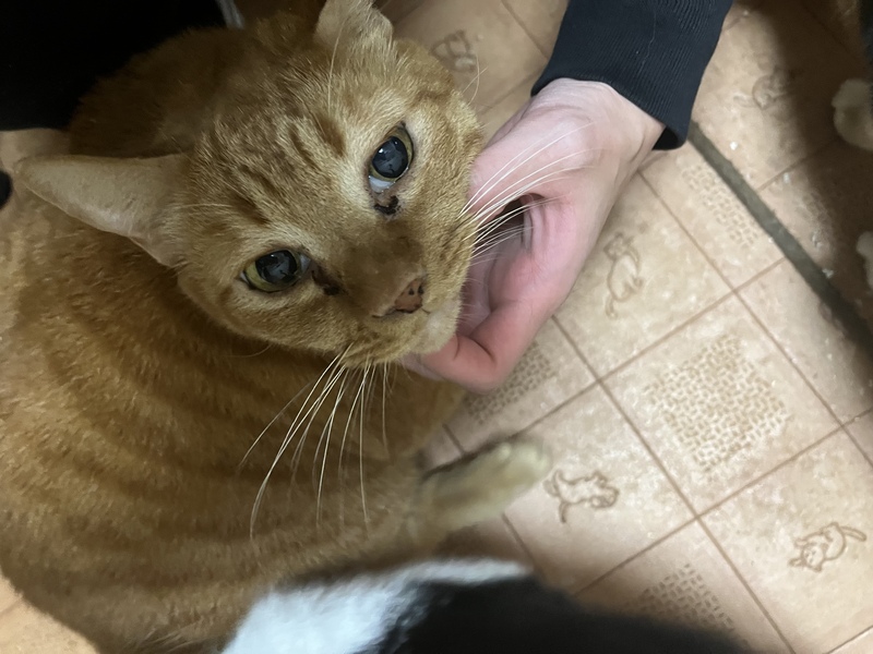 | 特徴(性格など) | 茶トラで肉球がピンクです。 正直、、むちむちのおでぶちゃんです。 自分がおでぶなことをすっかり忘れてしまい他の猫が通れるところを自分が通れず、しょんぼりすることがたまにあります。(かわいい) そんなおデブちゃんですが健康上は全く問題ないです。 人懐っこく、膝に座るのも大好きですが 抱っこがあまり好きじゃないです。(おデブを自覚済み) |