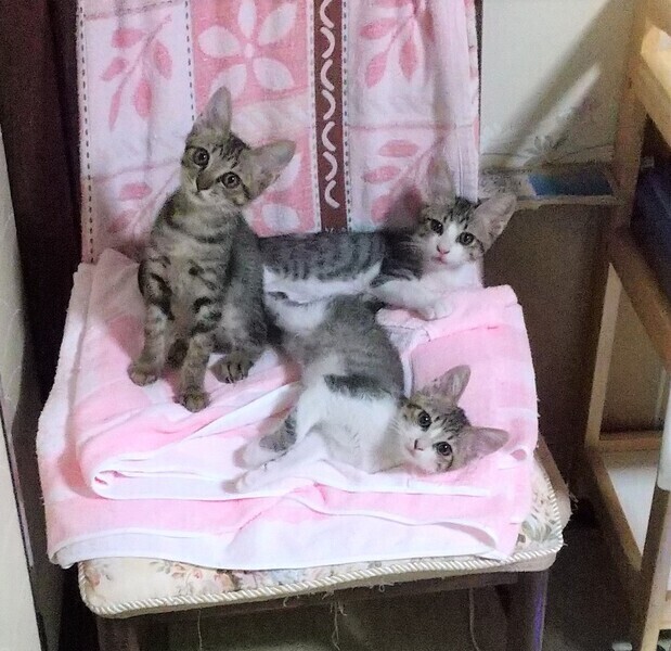 | 里親募集する理由 | 母親とはぐれ、仔猫3匹だけで バス通りの交差点にいました。 天気も不安定で(熱中症・台風など)数日間、寝食も出来ていない様子で 命の危険を感じたので保護しました。 |