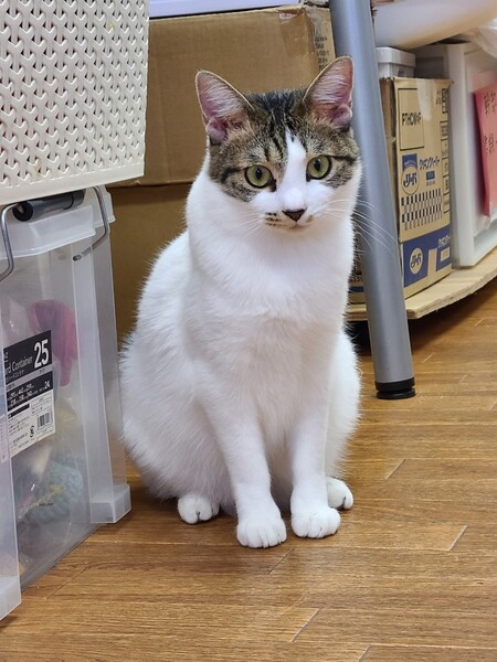 | 特徴(性格など) | 2020.5.15生まれ(推定) 毛色:キジ白 ふんわり白多めのボディの所々にキジトラ模様が入った女の子♀ まだ1歳になったばかりで、遊びたい盛りのスフレは、 ケージから出すと1人でオモチャを狙って走り回って遊ぶ活発な女の子♪ いつもは大好きなママ友・マカロンの傍にピッタリと寄り添っていますが、 新しい環境でも隠れたりしないで探検に行くタイプです! 人懐っこい性格で、スリスリと寄ってきてくれるとってもカワイイ子です♡ 新しい家族に見守られ、のんびり第二の猫生を過ごせるお家を探しております☆ |