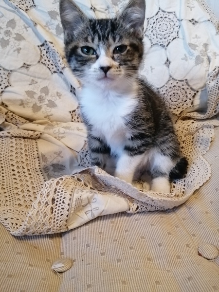 | 特徴(性格など) | 生後3ヶ月弱、ほぼ体重1キロのキジトラ女の子です。 元気いっぱいで好奇心旺盛! 人慣れもしていますのですぐ順応できると思います。 ただいま少し結膜炎をおこしてて目薬を処方されて、さしてます。 特に重症ではないので治ると思います。 あと少しくしゃみします。 |