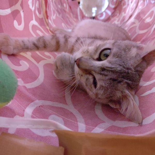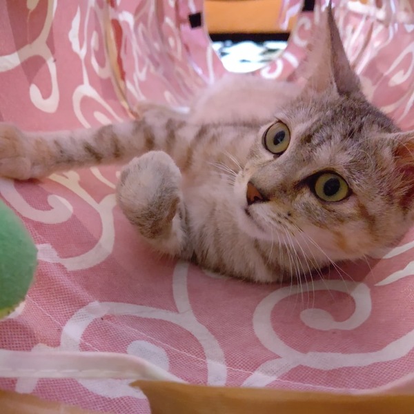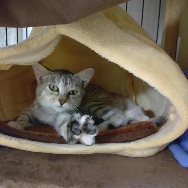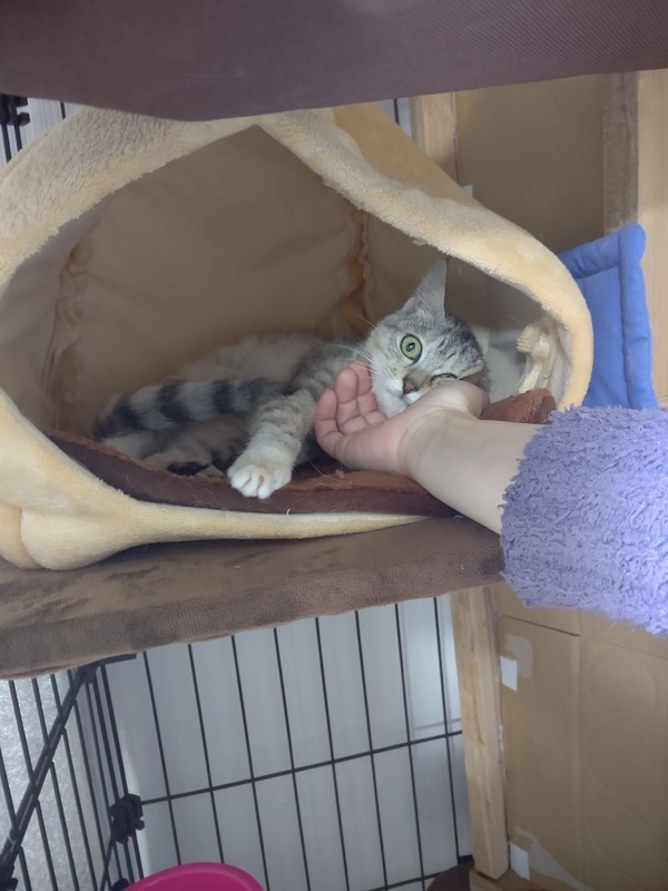 | 里親募集する理由 | ミラちゃんが保護された時、右足を複雑骨折していました。(手術済) 事故に遭ったものとものと思われます 当事者か見つけた人が前の預かりさん宅の前に捨てていったやうで、前の預かりさんが保護してくださいました! 先住猫さんとの年齢の差もあったせいかひとりで遊ぶことが多かったため、今の預かり(うち)に移りました! |