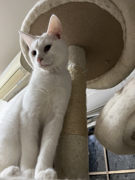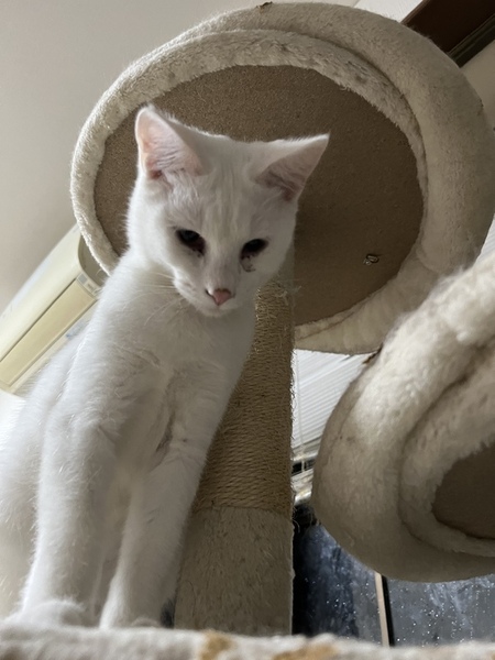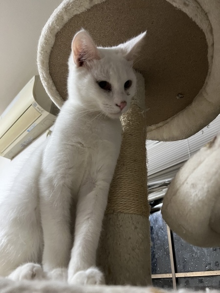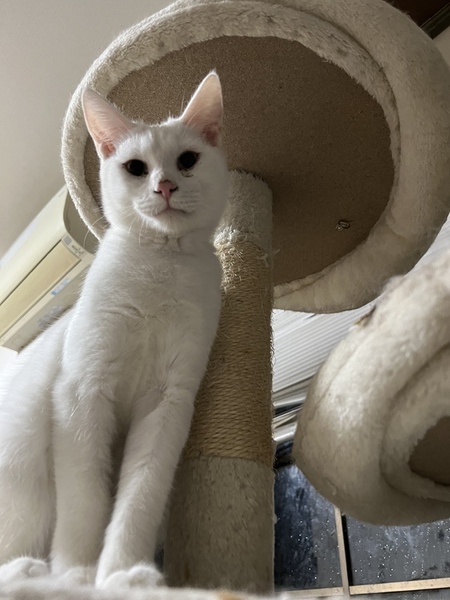 | 特徴(性格など) | 全体が白で綺麗な猫ちゃんですが、猫同士はは仲良く出来るのですが、本当は甘えたいのに甘えられない様に見受けられます。。 | ||