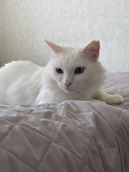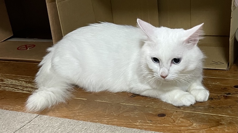 | 特徴(性格など) | 長毛、真っ白、薄いブルーグレーの瞳 臆病 人見知りするのですが、本当は甘えん坊です。 |